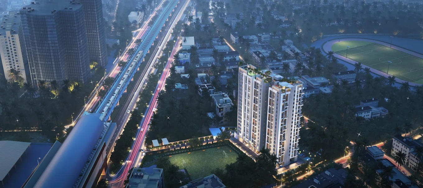 Evara brings a new benchmark of modern luxury living on E.M. Bypass with finely designed apartments offering stunning views from every floor. Crafted with precision, the tower blends premium finishes, thoughtful layouts, and contemporary amenities to enhance everyday comfort. It delivers a serene, sophisticated lifestyle where elegance, functionality, and city convenience come together seamlessly.