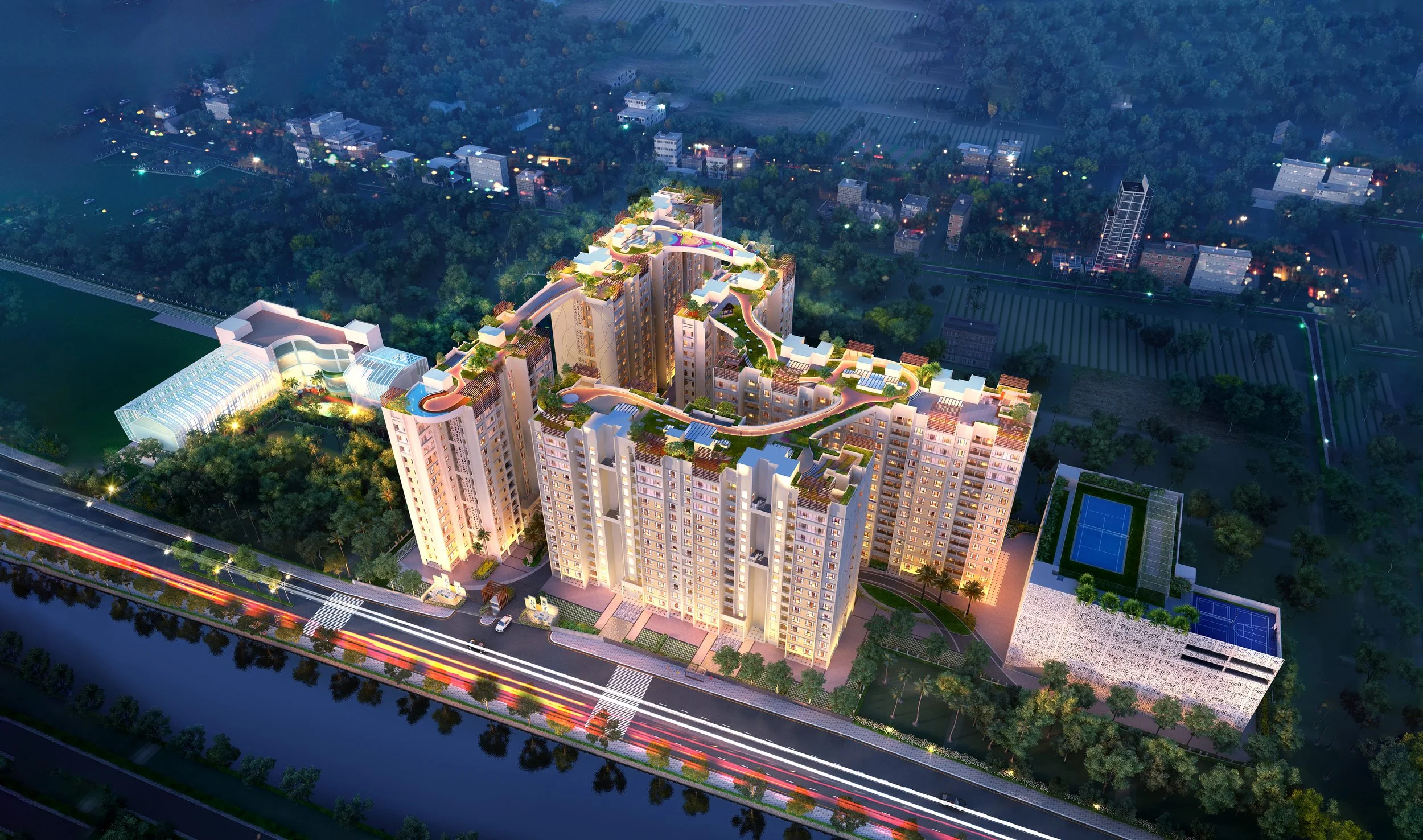 Siddha Suburbia brings peaceful and spacious residential living near Narendrapur on Southern Bypass, featuring 2 & 3 BHK apartments and 3 & 4 BHK bungalows within a green, family-friendly neighbourhood. The project stands out with its signature skywalk connecting the towers and offering elevated leisure spaces, complemented by lifestyle amenities such as a clubhouse, swimming pool, gym, landscaped gardens, indoor games and activity zones for children and adults. With smooth connectivity to Narendrapur, Kamalgazi, Garia and nearby educational institutes, hospitals, retail hubs and transport links, it is an excellent choice for families seeking comfort and convenience in South Kolkata.